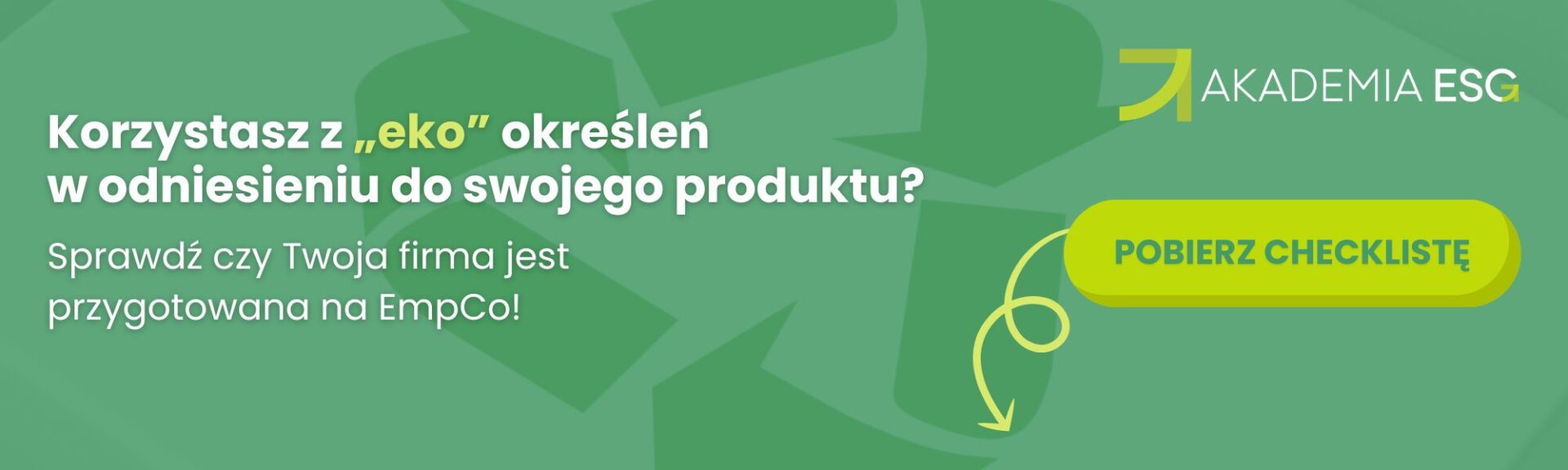 Dyrektywa EmpCo już niebawem mocno wpłynie na komunikację zewnętrzną firm. Oznacza to koniec z ogólnymi hasłami „eko”, „naturalny” czy „przyjazny klimatowi”, używanymi bez pokrycia w rzeczywistości. Dlatego oddajemy w Twoje ręce anty-greenwashingową checklistę, dzięki której samodzielnie sprawdzisz każdy materiał B2C – 43 pytania TAK/NIE, treść zweryfikowana przez prawnika. Pobierasz bezpłatnie i korzystasz bez ograniczeń do weryfikacji każdego materiału. Jeżeli nie chcesz narazić się na greenwashing, korzystanie z naszej checklisty to must-have!