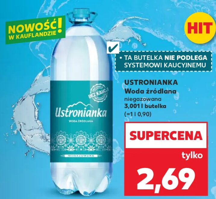 Przypomnijmy, że z początkiem października w Polsce wszedł w życie system kaucyjny. Ma zachęcić klientów do oddawania pustych butelek i puszek do sklepów albo wrzucania ich do specjalnych automatów. Dzięki temu odpady mają trafiać do recyklingu, a nie na wysypiska czy do lasów. Nowe przepisy obejmują plastikowe butelki do 3 litrów. I właśnie tutaj pojawił się wyjątek, który szybko wzbudził emocje. Marka Ustronianka wprowadziła do sprzedaży wodę mineralną w butelce o pojemności 3,001 litra. Takie opakowanie formalnie nie podlega systemowi kaucyjnemu. Produkt trafił do sieci Kaufland i natychmiast stał się przedmiotem dyskusji.
